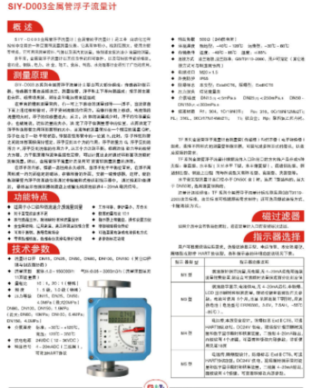 产品标签:金属管浮子流量计 SIY-D003系列 SIY-D004系列 SIY-D003系列 SIY-D004系列 金属管浮子流量计